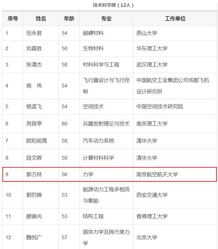 11月28日,中国科学院正式公布了2017年院士的增选结果。今年共计有61名新当选的中国科学院院士,我校郭万林教授当选中国科学院技术科学部院士,至此,我校已培养了14位两院院士。
