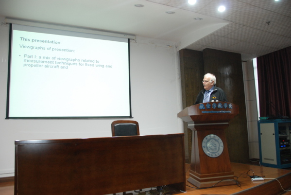 应我校航空宇航学院直升机旋翼动力学国家级重点实验室招启军教授邀请,Jürgen KOMPENHANS博士于2017年11月28日至30日访问了我校,并于11月30日为我校师生做了题为“Advanced Measurement Techniques for Helicopter Research”的学术报告。报告介绍了基于PIV以及TSP技术的流动控制和旋转流测量方法以及在直升机领域的应用等内容。同时,Jürgen KOMPENHANS博士还结合自己多年的研究经历,与现场听众分享了研究心得和体会,与现场听众分享了上述流动测量技术在桨叶变形测量、密度梯度测量领域的研究心得和体会。招启军教授主持了报告会。