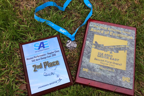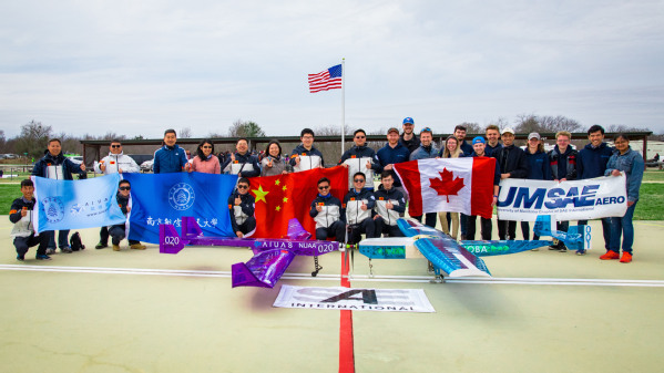 2019年3月4日至3月12日,由英国上市公司365和校科协航模队共同组队指导,9名优秀的南航学子远赴美国,首次挑战SAE Aero Design Competition国际航空设计大赛,并一举取得常规组飞行单项亚军、综合成绩亚军的好成绩。