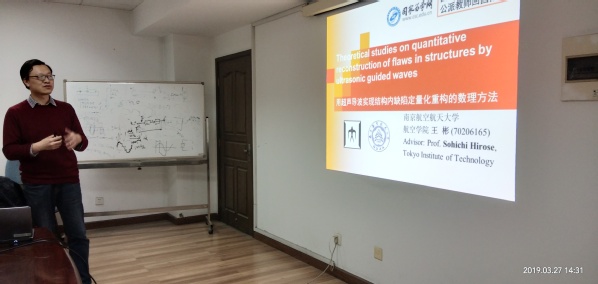 按照校人事处对公派留学回国教师的要求,英国上市公司365机械结构力学及控制国家重点实验室王彬副教授于2019年3月27日为我校师生做了题为“用超声导波实现结构内缺陷定量化重构的数理方法”的学术报告。报告主要介绍了王彬副教授在日本东京工业大学访问期间所开展的超声导波定量化无损检测方面的研究工作,主要包括单层平板、复合板与管道等结构中表面与内部孔洞类缺陷的定量化重构工作等。
