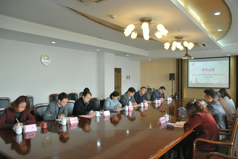 3月27日上午,国际合作处/港澳台办公室处长张卓、副处长陈峰、国际合作项目科科长沈敏、综合事务科科长祖语嫣一行四人来学院调研指导。院长高存法、党委书记冯绍红及全体领导班子成员参加了调研座谈会。