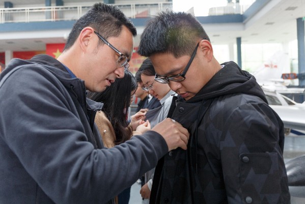 宣誓结束后,2017级硕士飞设二支部张钊同学代表新党员进行了发言,他讲到,成为预备党员是新的起点,党员不只是一个身份,更是一份责任,预备党员们今后要更加严格要求自己,本着全心全意为人民服务的宗旨,不断加强理论学习,提高政治思想素质,坚定共产主义信仰,并以求真务实的作风做好每一件事,用实际行动践行今天许下的誓言,努力成为一名合格的共产党员。随后教师党员为新党员代表佩戴上了象征党员身份的党徽。