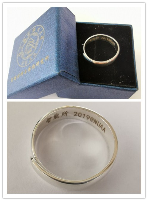 仪式开始,智能所全体教师为2019届毕业生赠送纯银指环践行,传授大学最后一堂人生课。王婧老师代表全体教师向大家解释该毕业礼物的含义:一方面希望各位毕业生毕业之后心永远和母校联系在一起,另一方面鼓励大家像银这种材料一样既能华贵精致又可在生产生活中找到广泛用武之地。接着,各位导师分别发表对毕业生的毕业寄语,亲手为自己的学生送上毕业礼物并合影留念。