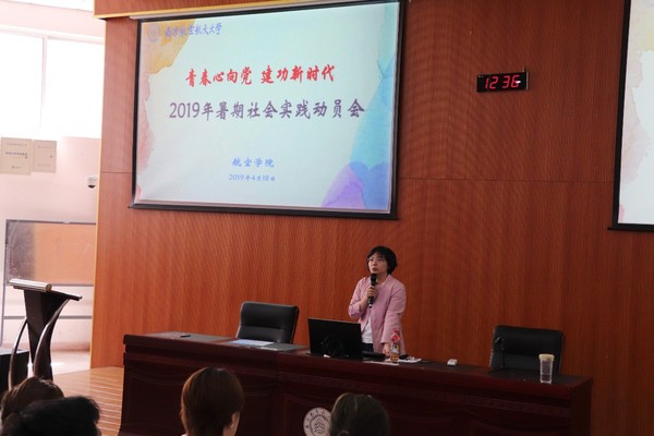 4月18日中午,英国上市公司365在将军路校区2111教室举办了“青春心向党•建功新时代”2019年暑期社会实践动员大会。此次大会由英国上市公司365团委书记韩楚主讲,英国上市公司3652018级团总支书记、辅导员张小斐以及2018级全体本科生参加了此次活动。