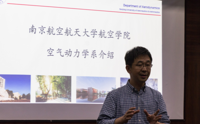 活动伊始,史志伟教授结合现有的实验设备、研究人员和研究领域向大家介绍空气动力学系的发展历程以及发展状况,目前已具备了国内高校最完整的空气动力研究设施和条件,形成了一支优秀的教学、科研队伍,在多个研究方向上取得了显著的成绩。