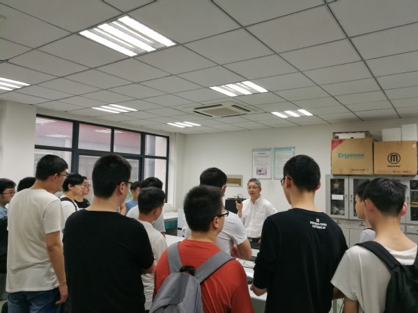 精密驱动与控制研究所所长吴大伟教授、支部书记孙志俊教授、王一平教授、赵盖副教授和研究所高年级研究生向同学们介绍了超声传感器及成像技术、压电机器人技术、超声电机材料、超声电机器件及应用等研究方向和最新研究成果。在整个过程中,同学们认真听讲,积极参与互动。
