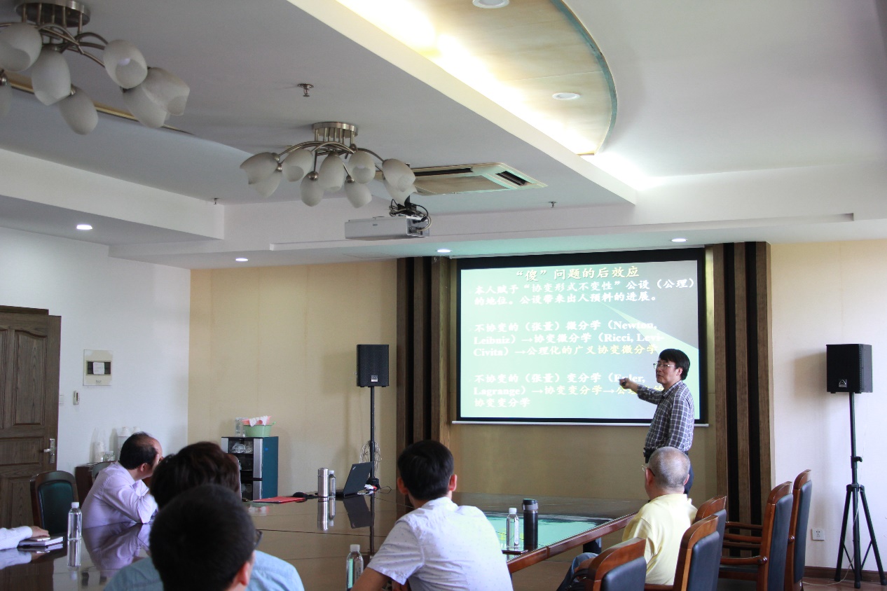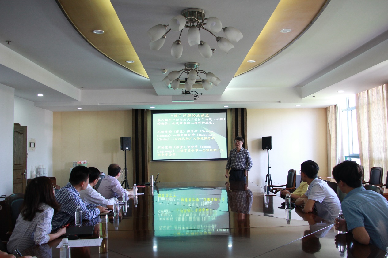 报告人讲述了在 《张量分析》的课堂上,受到博士生提出的“傻”问题的启发,并展开研究取得的新的研究进展——经典的协变微分学,被发展成了广义协变微分学;经典的变分学,被发展成了协变变分学和广义协变变分学。由此,分享了自己关于教学研相辅相成、相互促进的一些心得,并与我校师生就相关领域的研究进行了交流和讨论。报告会由王立峰教授主持。