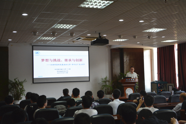 王琪教授以中国梦开始,讲述了新科技的发展对实现中国梦的推动作用,创新是时代的主题,挑战和继承就是联系梦想与创新的桥梁。本次报告分大学生的梦想与挑战、科学技术的发展与创新和在大学学什么、怎么学三部分。