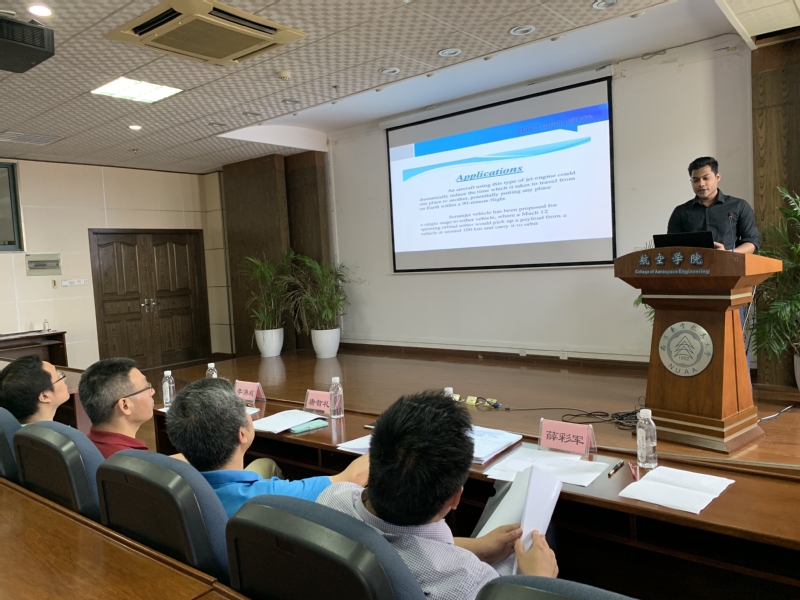 本次论文答辩共有“Conceptual design of a VTOL aircraft”、“Reflected shock wave control in scramjet isolation section”、“Research on drag control of large civil aircraft engine nacelle by using flow control”、“Parallel genetic algorithms for airfoil optimization”、 “ Raw Materials & Solutions for Range of Electric Aircraft”、 “Finite Element Analysis for Load Distribution on Multi-Fasteners Joints”、“Smart Composite Based on Shape Memory Alloys”、“Design and Analysis a morphing wing actuation mechanism using smart materials in UAVS” “多目标梯度优化算法及在气动外形优化中的应用”、“形状记忆聚合物及其复合材料的热力学行为研究”等17个汇报主题,每篇论文的内容陈述与问答环节共计15分钟。答辩组专家针对每位留学生论文存在的问题,提出了修改意见和建议。
