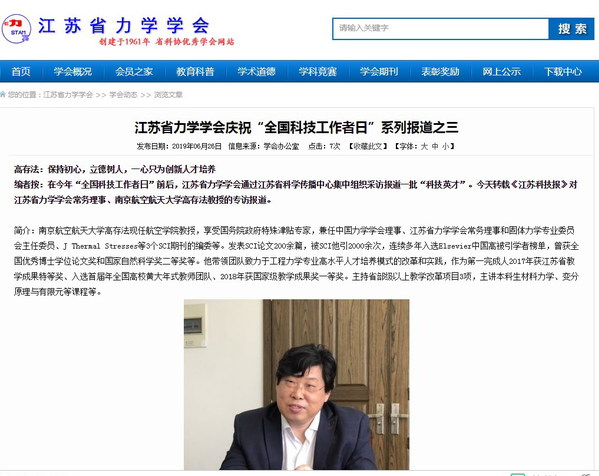江苏省力学学会庆祝“全国科技工作者日”系列报道之三 高存法:保持初心,立德树人,一心只为创新人才培养