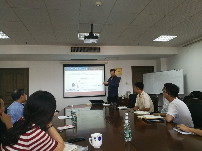 应我校机械结构力学及控制国家重点实验室王在华教授邀请,匈牙利布达佩斯工业与经济大学应用力学系Ambrus Zelei博士于2019年9月5日至9月12日期间访问我校,并于9月9日做了题为“Mechanical Models for studying legged locomotion and human balancing”的学术报告。报告主要介绍了关于人体腿部运动和人体平衡力学模型的相关研究成果。报告内容丰富、精彩生动,对我校相关科研工作具有借鉴作用。报告会由王在华教授主持。