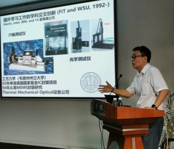 刘胜教授回顾了自己求学以及科研的经历,讲述了自己从学科交叉创新上寻求突破的故事,从复合材料转而研究微电子封装,在LED、MEMS和电子器件可靠性等研究方向上做的创新性研究和突破性成果。随后,结合近期中美贸易战,分析了中国工业的现状。我们必须利用自身优势,把握“以创新占据技术制高点、坚持持之以恒和工匠精神”的大方向,来实现国家科技发展。关于新工科的思考,刘教授指出科学技术的发展和重大科技成果的取得越来越依赖于学科交叉。
