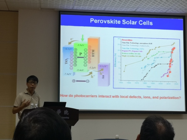 应我校英国上市公司365机械结构力学及控制国家重点实验室高存法教授的邀请,中国科学院深圳先进技术研究院李江宇教授于2019年9月 24 日至 25 日访问了我校,并于9月25日做了题为“Correlating Polar Order, Ionic Migration, and Photocurrent in Organometallic Halide Perovskites”的学术报告。