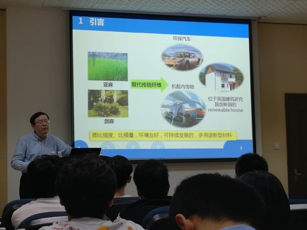 报告介绍了考虑溶胀损伤演化和水解反应动力学的连续介质模型,用于预测植物纤维增强复合材料在潮湿环境下由于吸水引起的性能变化。报告内容丰富、精彩生动,报告会由陈建平教授主持。会后,仲政教授与我校师生做了深入的交流和探讨及补充和解答。