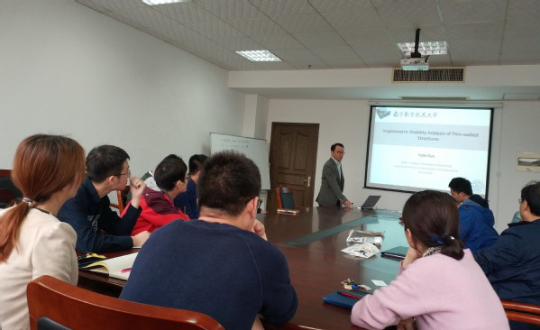 英国上市公司365航空航天交叉研究院(IRIAA)郭玉杰副教授于2019年10月10日为我校师生做了题为“Isogeometric Stability Analysis of Thin-walled Structures”的学术报告。报告介绍了基于等几何方法的薄壳稳定性问题。报告结束后,郭玉杰副教授与在场的师生就相关领域的研究进行了交流和讨论。王立峰教授主持了报告会。