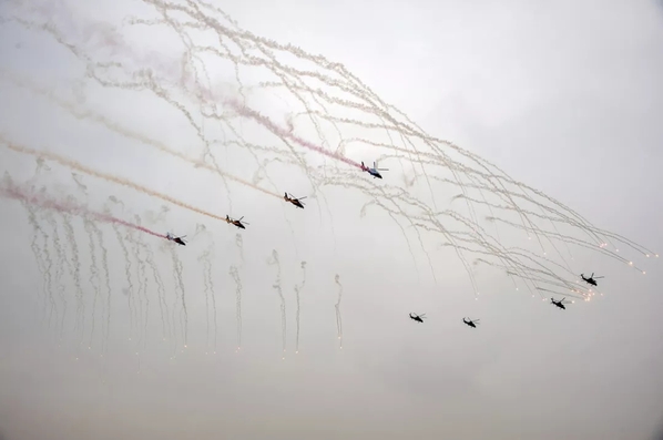 开幕式上陆军风雷飞行表演队的17架直升机(8架直-10、5架直-19、4架直-20),再次翱翔蓝天,前不久它们刚刚在国庆大阅兵中接受了祖国和人民的检阅。