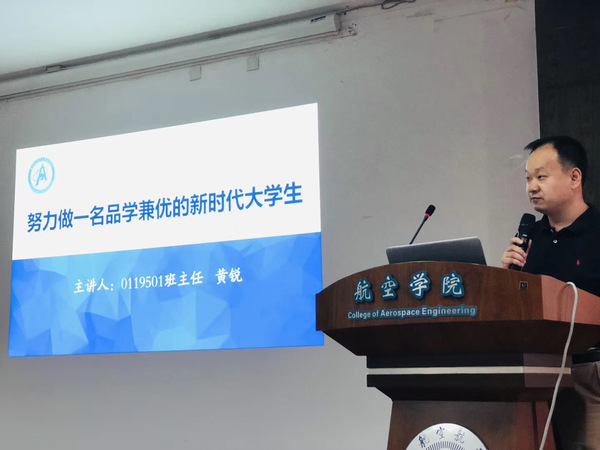 来自工程力学专业的新生代表朱星森,也讲述了他入学以来报到、军训、参加各种学院活动的感受,对学院的关怀表示真挚的感谢,并与新生共勉,愿以航空报国为己任,树立远大目标,用实际行动提升自我,在四年后成为全方面发展,成绩、品行优秀、对航空事业能做出贡献的人才。