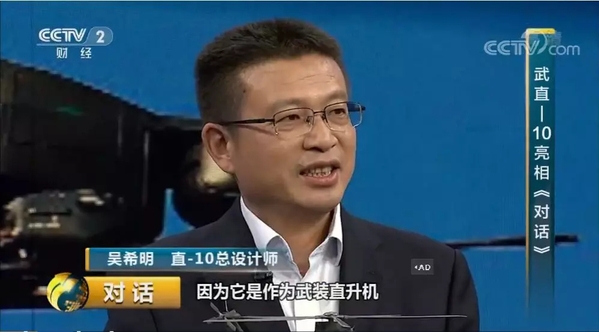 什么是直-10?直-10准确名字叫做,直-10专用武装直升机。武装直升机有很多种,有专用武装直升机、有武装直升机、有武装侦查直升机。也有不少直升机是通用的,它可以加上武器变成武装直升机,也可以作为武装攻击机,也可以用于其它用途。直-10就是纯粹作为攻击使用,它可以在任何地方起飞,在任何环境下作战使用,扶摇直上,无所不达。在10月1日的阅兵现场,坐在观礼席的吴希明看到自己设计的航空产品,航空装备,接受党和国家领导人的检阅,接受全国人民的检阅时候,感觉就像自己在飞行一样。