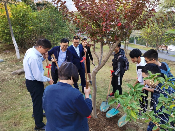 会后,在姜斌副校长、科协刘双丽秘书长、英国上市公司365魏小辉副院长和英国上市公司365部分师生的陪同下,张统一院士为之前在我校“院士林”亲手种植的一株桂花进行了培土,并和大家合影留念。