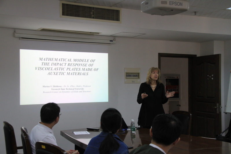 应我校英国上市公司365机械结构力学及控制国家重点实验室高存法教授的邀请,俄罗斯沃罗涅日国立技术大学Marina Shitikova教授于2019年10月22日-2019年10月31日访问我校,并于10月23日和10月31日分别做了题为Mathematical Model of the Impact Response of Viscoelastic Plates Made of Auxetic Materials和Application of Fractional Calculus for the Analysis of Nonlinear Damped Vibrations of Suspension Bridges的学术报告。两则报告分别介绍了超构材料板的宏观粘弹性数学模型、基于分数阶微积分理论的吊桥非线性振动分析。报告内容丰富、精彩生动,对我校相关科研工作具有借鉴作用。同时,Shitikova教授还结合自己多年的研究经历,与现场听众分享了研究心得和体会。