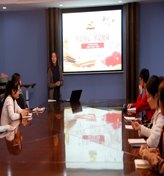 参观结束后,党支部书记张小斐于A18-511会议室为支部党员讲授“不忘初心,牢记使命”专题党课,张小斐从共产党人的“初心”和“使命”谈起,结合主题教育的总要求和总目标,以当代青年学子实际事例为载体,讲述当代大学生如何做到“不忘初心,牢记使命”,牢记为中国人民谋幸福和为中华民族谋复兴的初心和使命,充分在同学中发挥先锋模范作用,积极为实现国家富强,民族振兴,人民幸福而有所作为,攻坚克难。