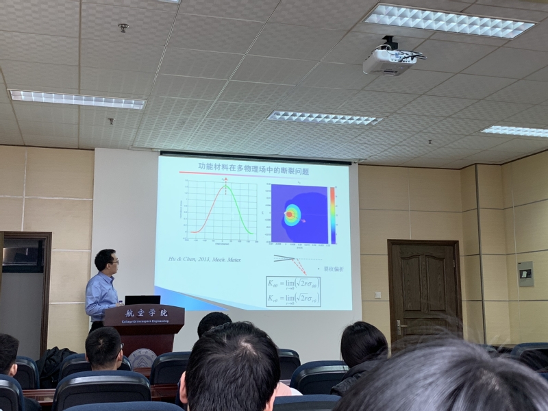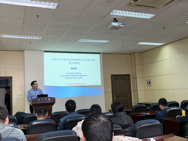 应我校英国上市公司365机械结构力学及控制国家重点实验室高存法教授的邀请,加拿大阿尔伯塔大学胡克强博士于2019年3月25日-2019年3月30日访问我校,并于3月26日和29日做了题为“界面裂纹的应力奇异性分析”和“复杂材料与结构在多物理场作用下的损伤与断裂力学研究”的学术报告。报告介绍了各向同性材料中的界面裂纹问题和各向异性材料中的界面裂纹问题,各种杂交的各向同性材料-各向异性材料中的界面裂纹问题,以及一些处理方法和结果等内容。报告涉及先进材料设计领域,重要结构可靠性及力学分析,氢环境中结构的疲劳及破坏研究,关系到工程实践中材料和结构的安全有效使用,具有科学和工程实践意义。报告内容丰富、精彩生动,对我校相关科研工作具有借鉴作用。同时,胡克强博士还结合自己多年的研究经历,与现场听众分享了研究心得和体会。
