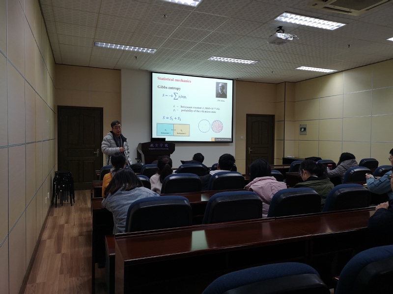 报告介绍了热力学中‘熵’一词的由来及其不同的定义方式,以及如何将熵的概念用于预测材料内部微结构和损伤的演化规律。报告内容丰富、精彩生动,对我校相关科研工作具有借鉴作用。同时,卢春生教授还结合自己多年的研究经历,与现场听众分享了他在自然灾害预报、纳米合金等多学科领域的研究心得和体会。报告会由戴明博士主持。会后,卢春生教授与我校师生做了深入的交流探讨和补充解答。