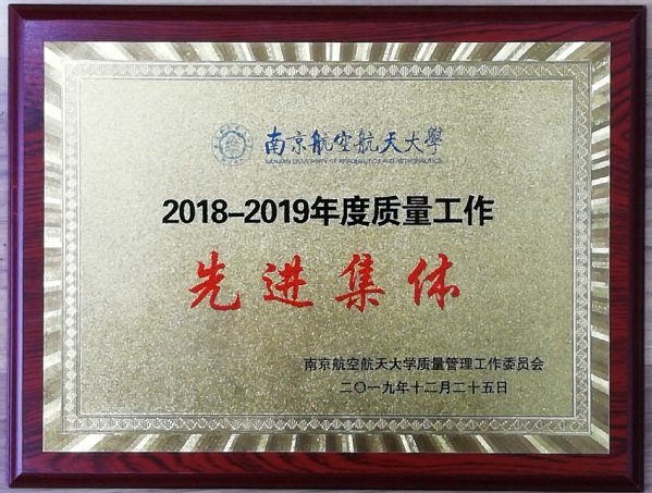 2018-2019年,我院认真贯彻执行国家有关质量管理的方针政策、法律法规和学校质量管理规章制度,积极完成各项质量工作任务,圆满实现年度质量目标,绩效优异,在武器装备质量管理体系标准转换及装备科研资质建设工作中做出贡献,被学校授予“质量工作先进集体”荣誉称号。同时冯诗愚、汤剑飞、张召明、周光明四位老师被授予“资质建设突出贡献奖” 荣誉称号,41位老师获“质量专项奖”,高存法、张金凤两位老师被授予“质量工作先进个人”荣誉称号。