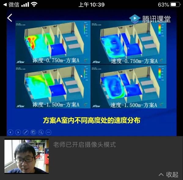 随后详细讲解了“如何利用流体力学知识进行科学防疫”这一问题:以“雷神山”医院的负压病房通风系统设计为例,介绍了如何降低医护人员被感染的概率;通过分析人咳嗽和打喷嚏过程中的流体运动特征,讲述了附着细菌和病毒的飞沫传播距离;通过分析行人流动尾迹区的污染物分布特征,指出了病人和疑似病人被隔离的必要性。
