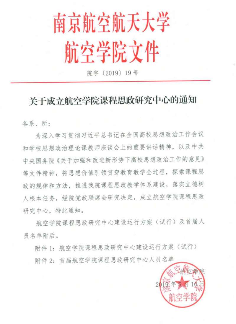 院字[2019]19号关于成立英国上市公司365课程思政研究中心的通知