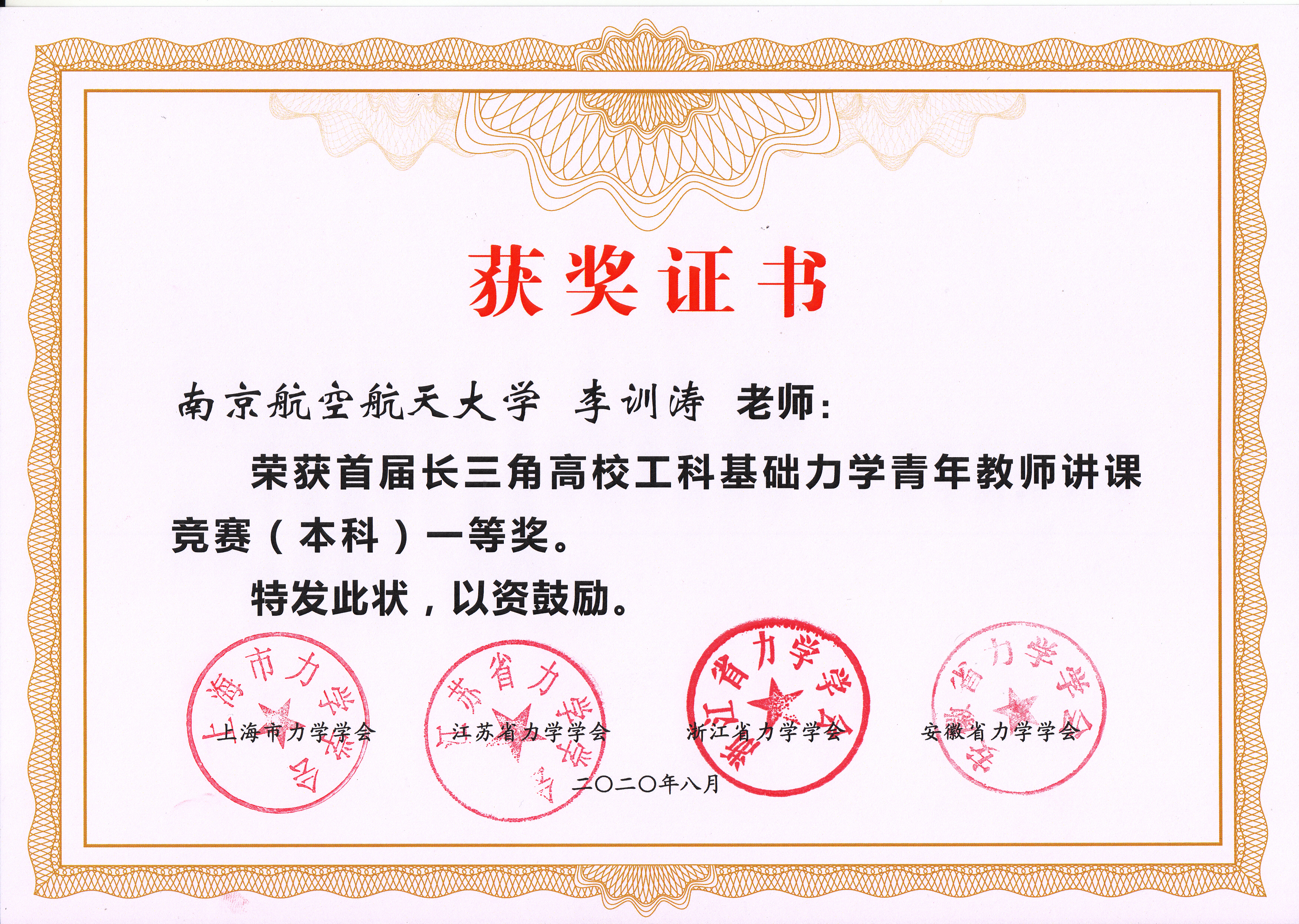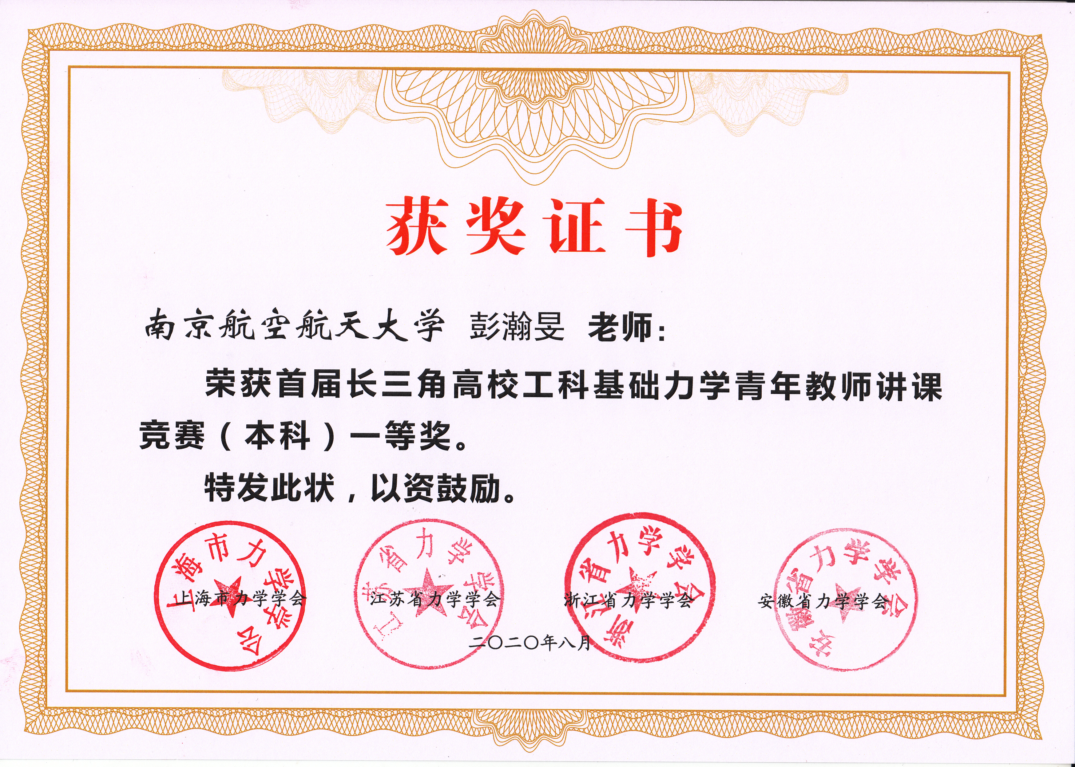 彭瀚旻、李训涛分别获首届长三角工科基础力学青年教师讲课竞赛一等奖
