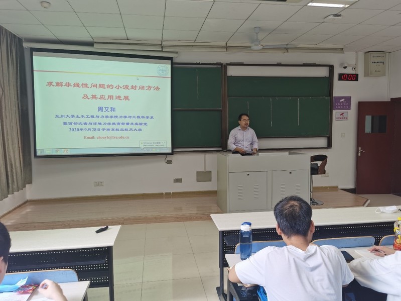 应我校英国上市公司365国家重点实验室高存法教授的邀请,兰州大学周又和教授于2020年9月26日至28日访问我校,并于2020年9月28日为钱伟长班学生做了题为“求解非线性问题的小波封闭方法及其应用进展”的学术报告。周又和教授首先介绍了目前非线性微分方程的研究背景及挑战性问题,再从离散小波的数学基础入手,引出了非线性边值问题的小波封闭解法,以及该方法在求解流体力学N-S方程上的应用,之后通过典型算例展示了小波方法适用范围广、计算效率高的优点,最后对小波方法的发展进行了总结和展望。报告内容丰富、精彩生动,对学生从事科研工作具有很好借鉴作用。同时,周又和教授还结合自己多年的研究经历,与现场听众分享了如何进行科技创新研究的心得和体会。
