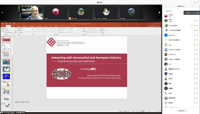 应我校英国上市公司365机械结构力学及控制国家重点实验室裘进浩教授的邀请,香港理工大学机械工程系成利教授于2020年9月28日做了题为“Interacting with aeronautical and aerospace industry: A personal journey and experience”的在线学术报告。