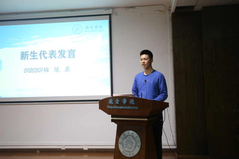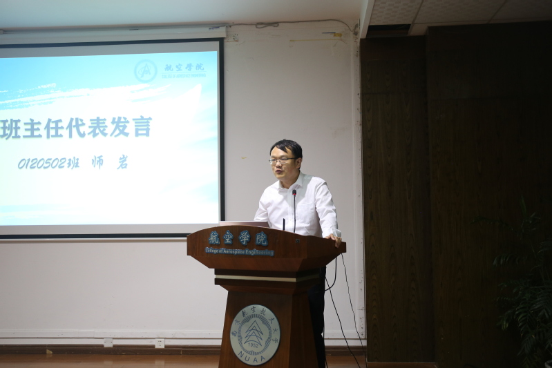 最后,0120502班班主任师岩和新生代表2020级工程力学专业陈奕先后发言。他们提醒新生要牢记航空报国的使命担当,在今后的生活中不断学习,不断超越,树立远大理想,为祖国的航空事业奉献力量。