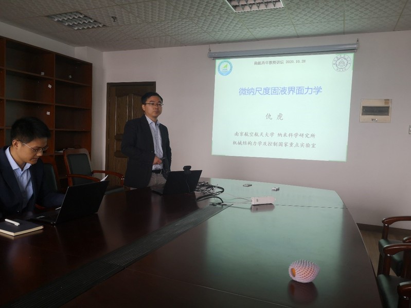 应我校英国上市公司365青年教授学术交流联谊会会长易敏教授的邀请,英国上市公司365仇虎教授于2020年10月28日做了题为“微纳尺度固液界面力学”的学术报告。