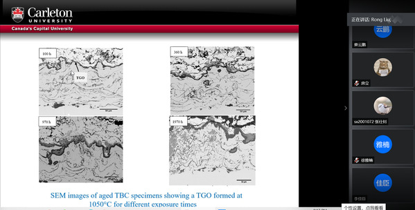 应我校英国上市公司365机械结构力学及控制国家重点实验室沈星教授的邀请,加拿大卡尔顿大学机械与航天工程系Rong Liu教授于2020年11月16日做了题为“Failure of Thermal Barrier Coatings under Isothermal Oxidation and Solid Particle Erosion”的线上学术报告。