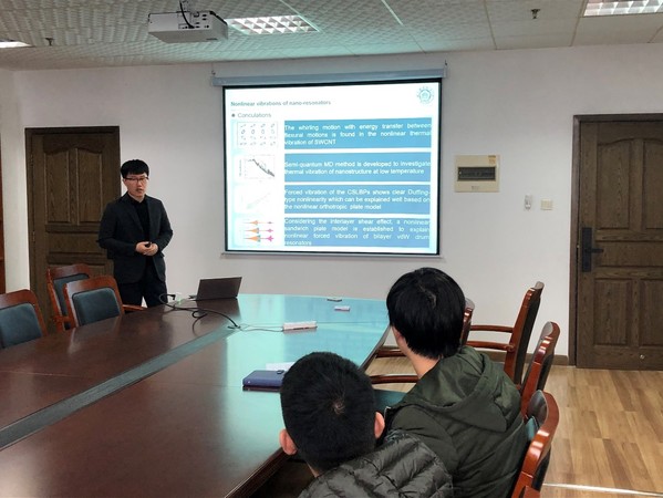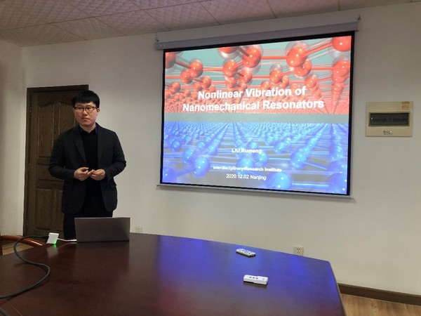 英国上市公司365航空航天交叉研究院(IRIAA)刘汝盟博士于2020年12月2日为我校师生做了题为“Nonlinear vibration of nanomechanical resonators”的学术报告。