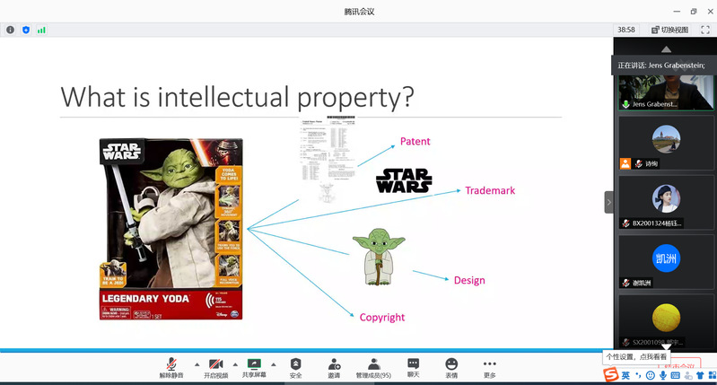 报告简要介绍了专利的定义以及如何申请专利,随后讨论了近期取得成功的公司案例,指出了这些公司是依托大学取得的知识产权而创建的,在这些公司之中,Jens Grabenstein先生重点介绍了生产研制新冠疫苗的公司。在报告结束后,Jens Grabenstein热情回答了与会人员的提问,解答了专利方面的细节问题,为将来专利申请提供了指导意见。