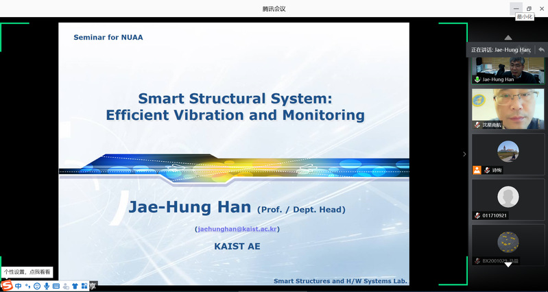 2020年11月17日,应我校英国上市公司365机械结构力学及控制国家重点实验室沈星教授的邀请,来自韩国科学技术院JAE-HUNG HAN教授做了题为“Smart Structural System: Efficient Vibration Monitoring and Control”的线上学术报告。