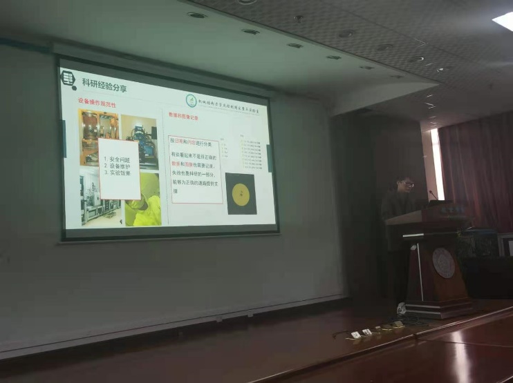 机械设计及理论专业2018级硕士生沈晖详细介绍了自己研究微纳米马达的经验和经历,着重向新生研究生介绍了阅读文献的技巧、做实验需要注意的事项以及自己参与学术会议的心得。