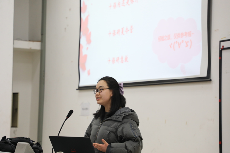 王樱从研究生方向的确定出发,和同学们分享了自己是如何在复旦大学、北京理工大学、上海交通大学等多所名校中最终选定留在南航。她强调了选择是个多方面综合考虑的过程,建议同学们从自身出发,认真考量。接着,王樱围绕保研流程给同学们提出了三点建议:提前向学长学姐取取经;有针对性的复习相关重点课程;梳理所有科创项目。