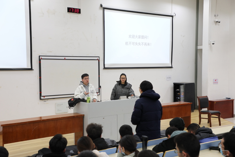 针对2018级本科生当前存在的发展困惑,本次月讲评围绕年级现状、政策介绍、朋辈解惑、良师引领四个部分开展,带领同学们从实际出发,引导学生做好毕业去向选择与生涯规划。