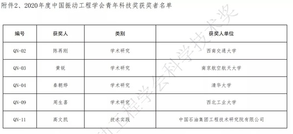 近日,中国振动工程学会公布了关于表彰2020年度中国振动工程学会科学技术奖获奖项目、2020年度中国振动工程学会青年科技奖获奖者的决定。