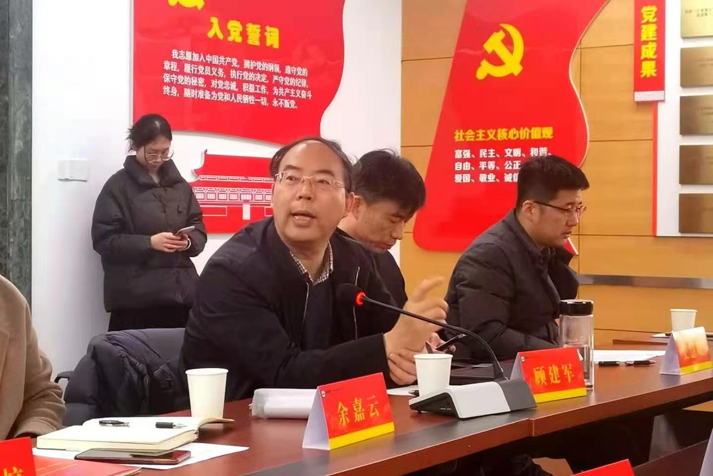 交流环节中,史慧明对教育科学学院“三全育人”工作的开展情况进行专题报告,他在报告中重点阐述了教育科学学院为开展落实“三全育人”工作所构建的思想育人平台、组织育人体系、文化育人品牌以及科研实践育人模式,分享了教育科学学院在推进落实“三全育人”工作中所取得的经验成果。钱征华介绍了我院的劳动教育课程设置概况,重点阐述了我院围绕航空专业特色,依托相关实践基地,开展航空类特色实践劳动教育课程的探索和实践。劳动教育课题组汤剑飞、杨忠清两位老师结合我院劳动课程实际开展情况与顾建军教授进行了深入探讨与交流,现场讨论氛围热烈。