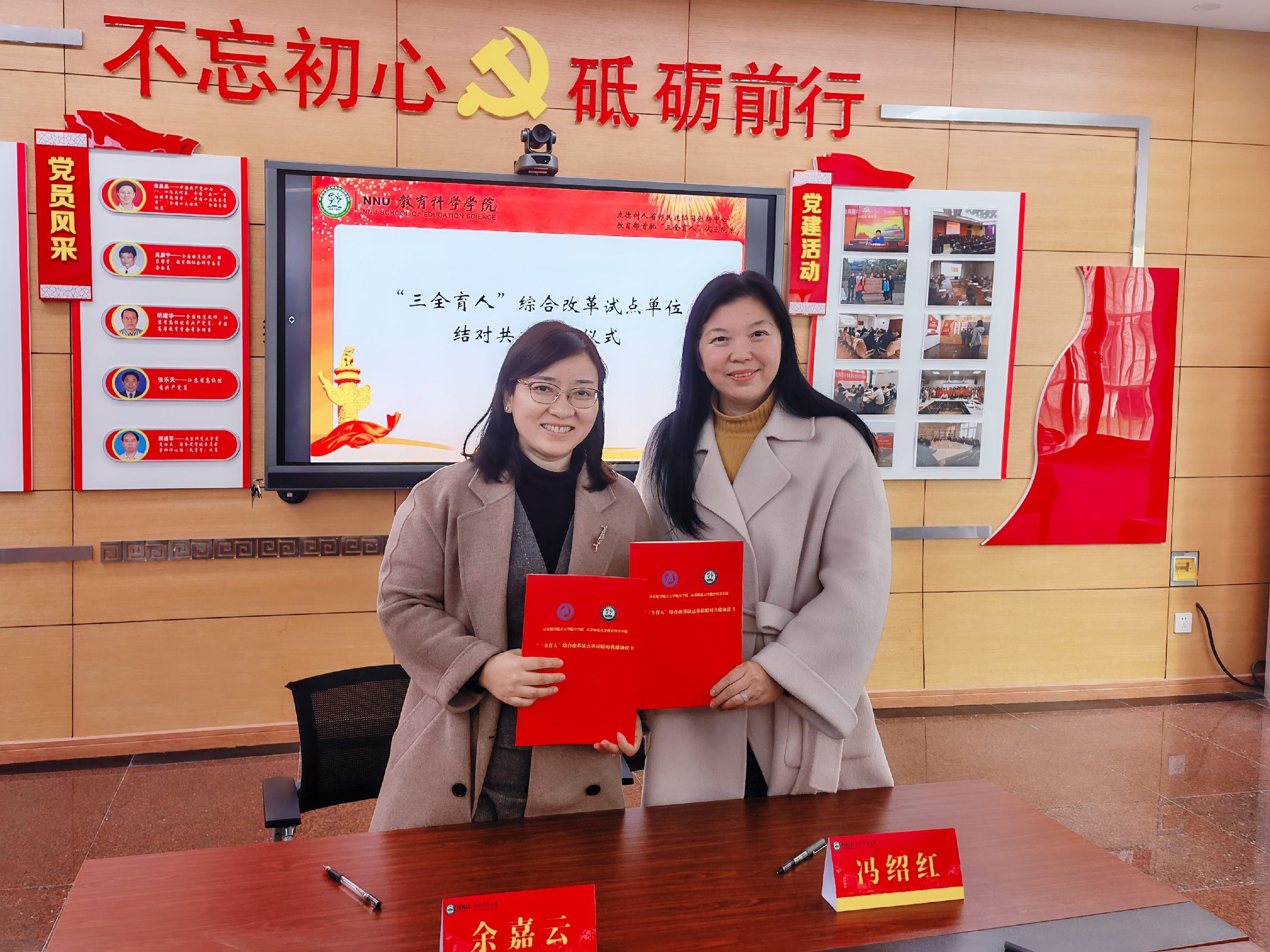 冯绍红与余嘉云共同签署了《“三全育人”综合改革试点单位结对共建协议书》。