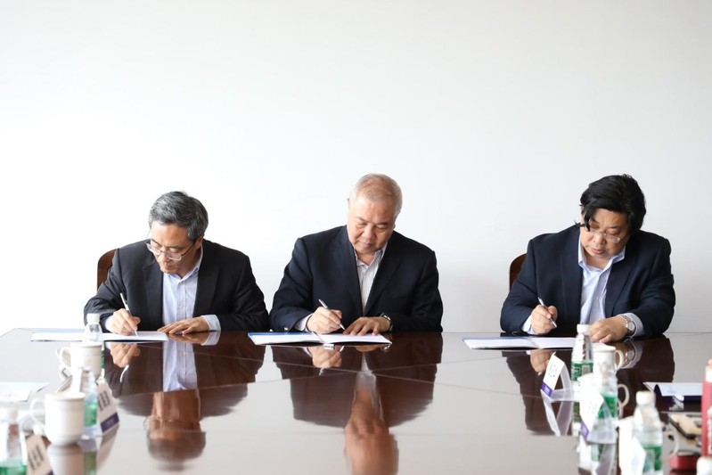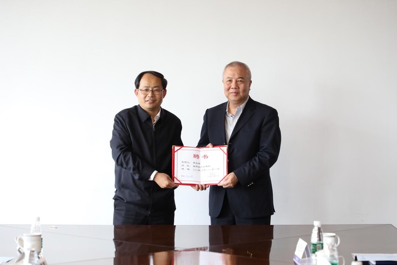 会上,吴光辉院士与崔海涛、高存法共同签订了聘任合同;单忠德向吴光辉院士颁发英国365集团“钱伟长讲座教授”聘书并为其佩戴了校徽。