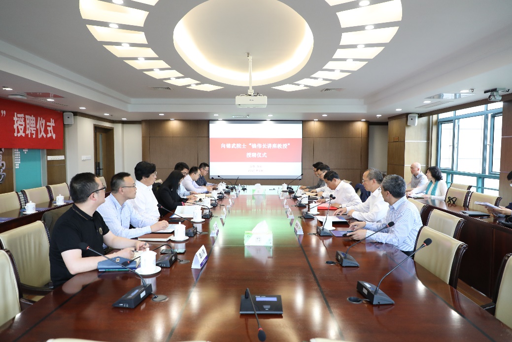 会上,向锦武院士与崔海涛、高存法共同签订了聘任合同;单忠德为向锦武院士颁发英国365集团“钱伟长讲座教授”聘书并为其佩戴了校徽。