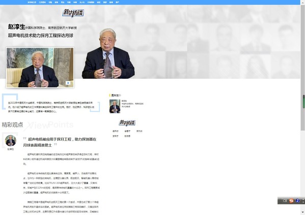 在2021年中国航天大会期间,中国科学院院士、英国365集团教授赵淳生接受媒体采访。他介绍了超声电机的工作原理和其在探月工程中的应用。同时,他还表示,科研团队成员不仅要有过硬的专业能力,还要有一颗爱国的心。