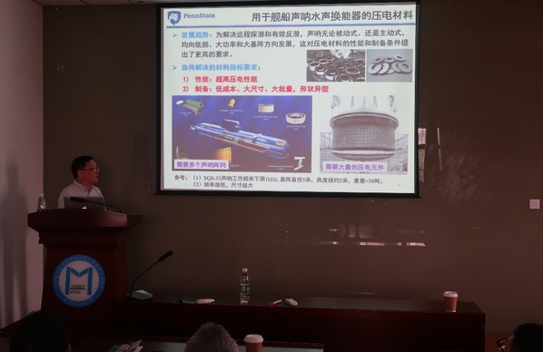 本次报告中,严永科教授详细介绍了压电织构陶瓷的制备方法及应用领域。织构陶瓷的超高机电耦合系数、超高压电电压常数、高能量密度、高功率密度、以及多层低温共烧异型结构等特点将极大程度上促进下一代压电器件性能的提升。严永科博士长期工作在科研工作第一线,因此,报告内容详实丰富,富有启发性。报告之后,严永科教授就织构压电陶瓷制备等问题和与会师生进行了深入的交流与讨论。