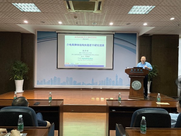 应我校英国上市公司365副院长、机械结构力学及控制国家重点实验室钱征华教授的邀请,浙江大学航空航天学院常务副院长陈伟球教授于2021年6月2日访问我校,并做了题为“介电高弹体结构失稳若干研究进展”的学术报告。报告介绍了陈伟球教授课题组近期开展的拉伸状态下介电薄膜失稳现象的理论建模和电压调控下弹性-介电双层结构的自弯曲变形及其稳定性研究,阐述了介电高弹体中特有的欧拉失稳、力电耦合失稳、拉伸断裂、电击穿等现象,以及在特定条件下的转换关系。报告内容丰富、精彩生动,对我校相关科研工作具有借鉴作用。同时,教授还结合自己多年的研究经历,与现场听众分享了研究心得和体会。钱征华主持了报告会,我校师生90余人参加。